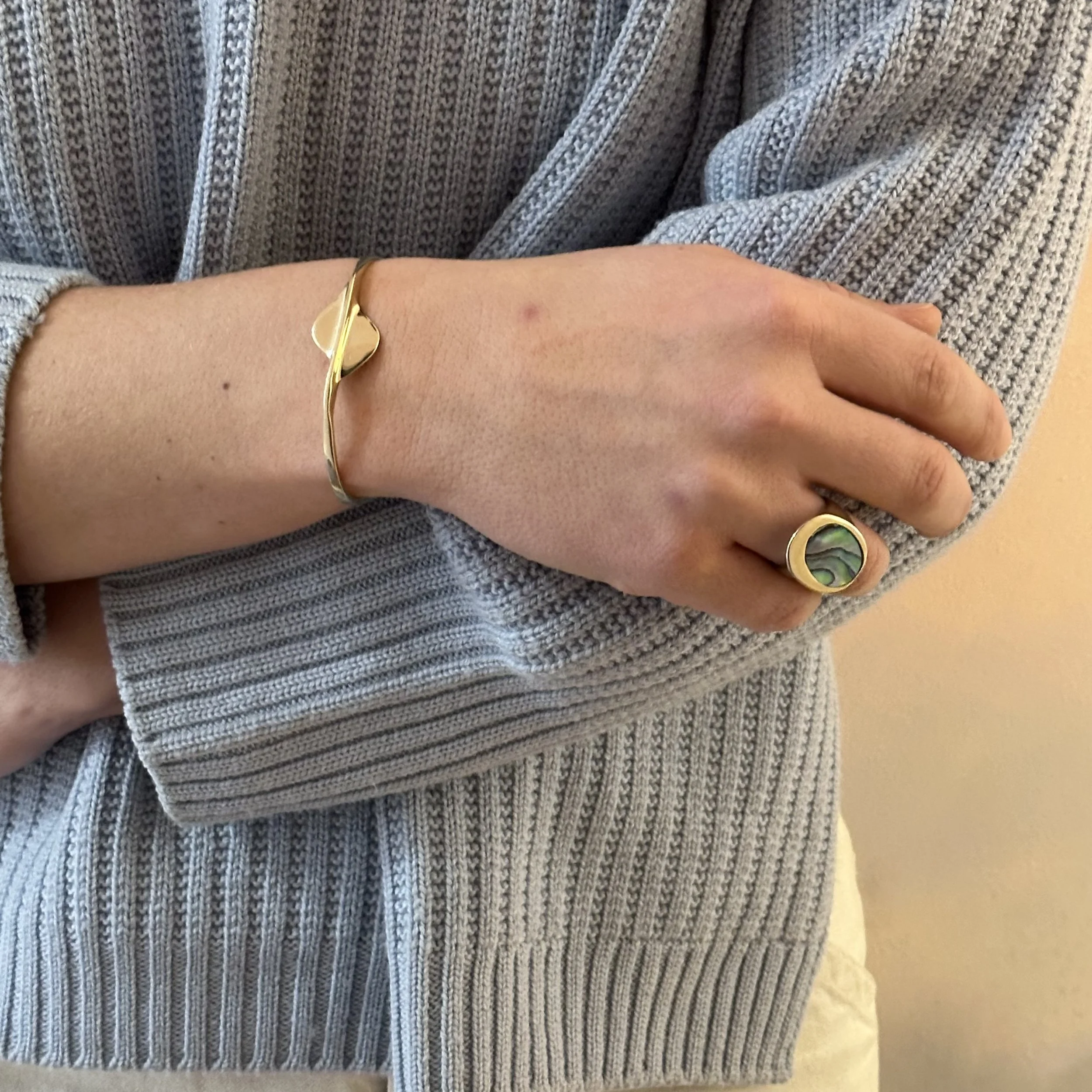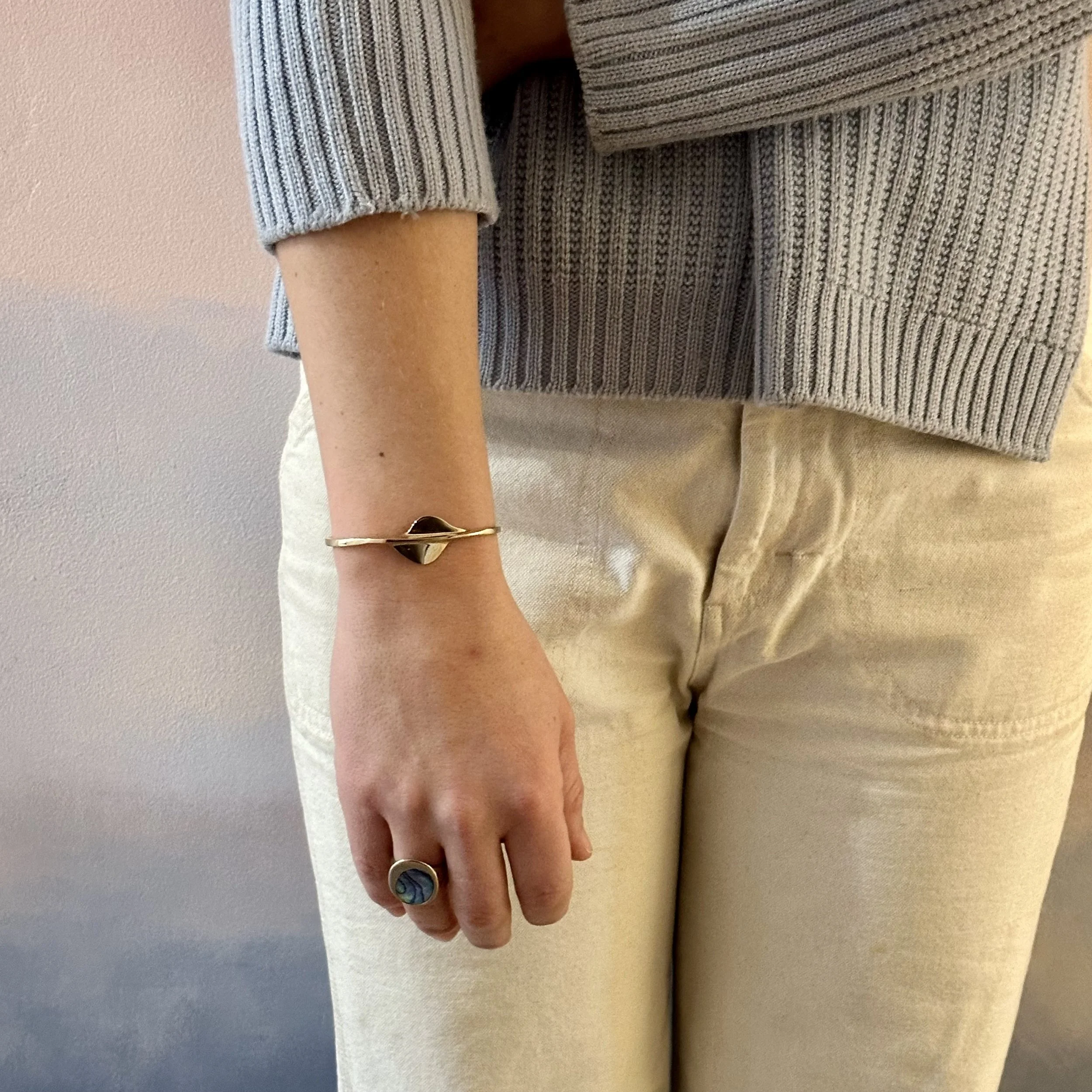 The Eero Cuff is a delicate brass bracelet that can be worn alone or layered with other bracelets. Additional metals available upon request.