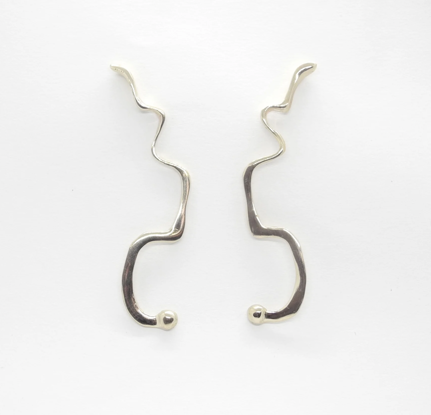 The Escalera earrings stretch above the post and squiggle back down to end in a ball.