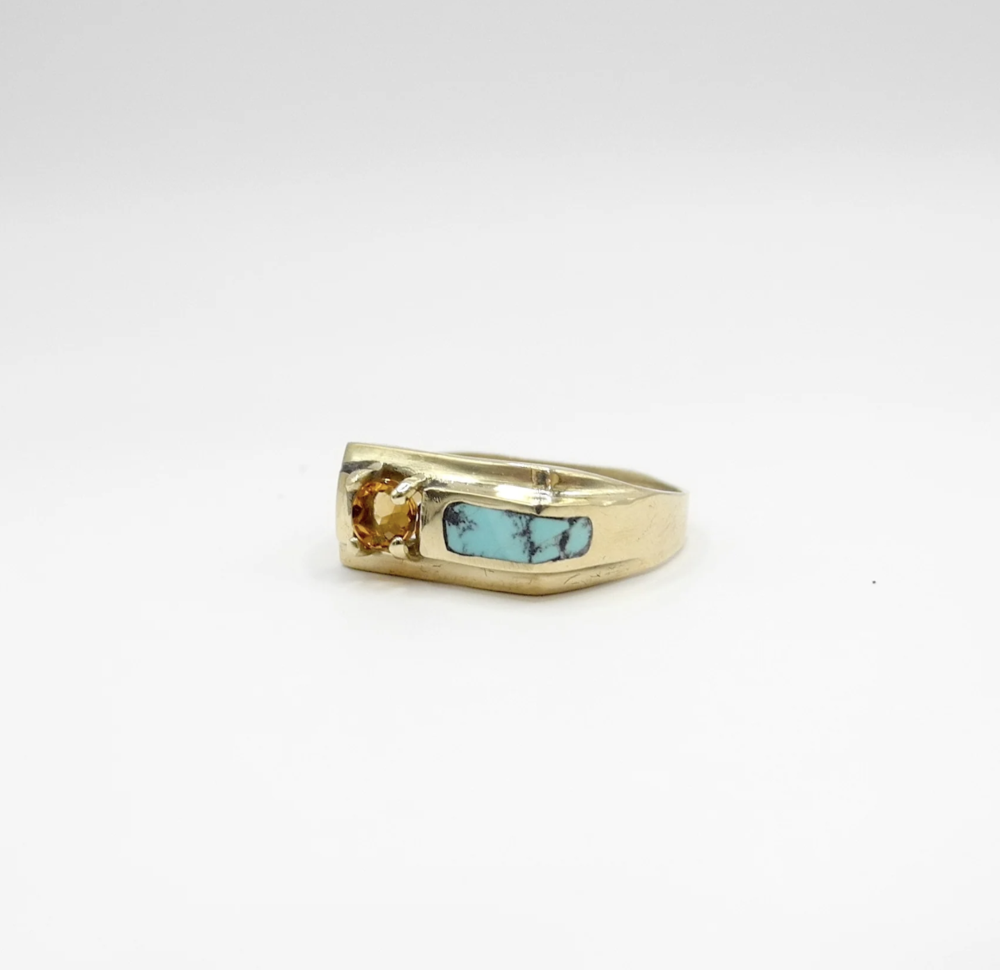 A 3mm prong set stone sits next to a rectangular inlay stone. Gold prices are available upon request as well as additional stone and inlay options.