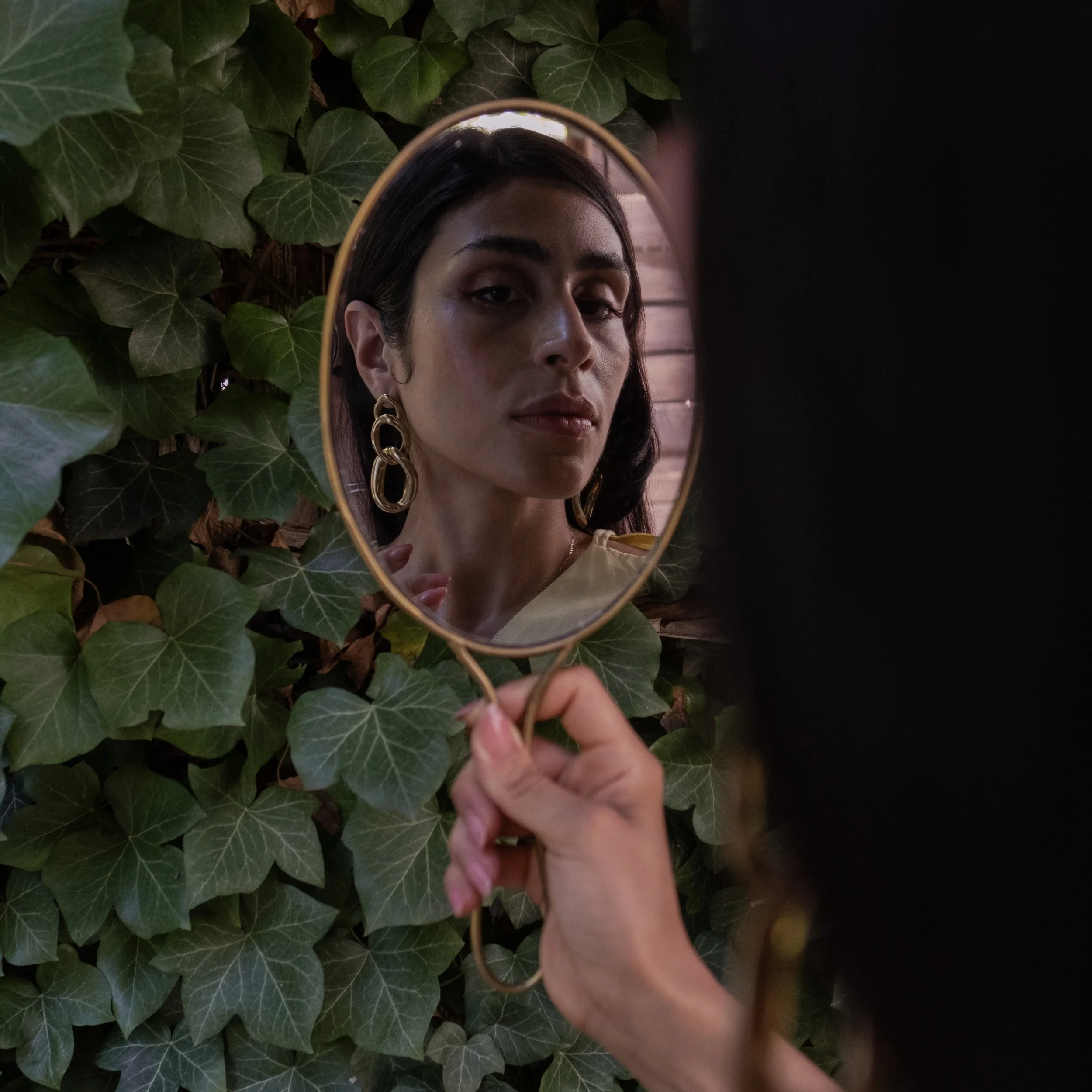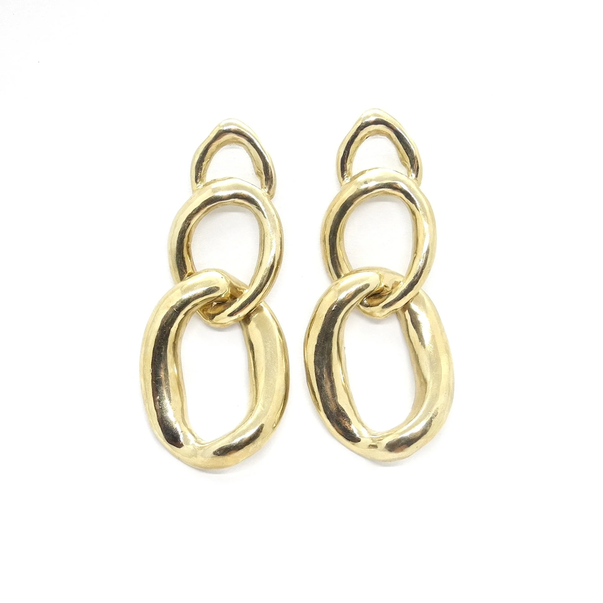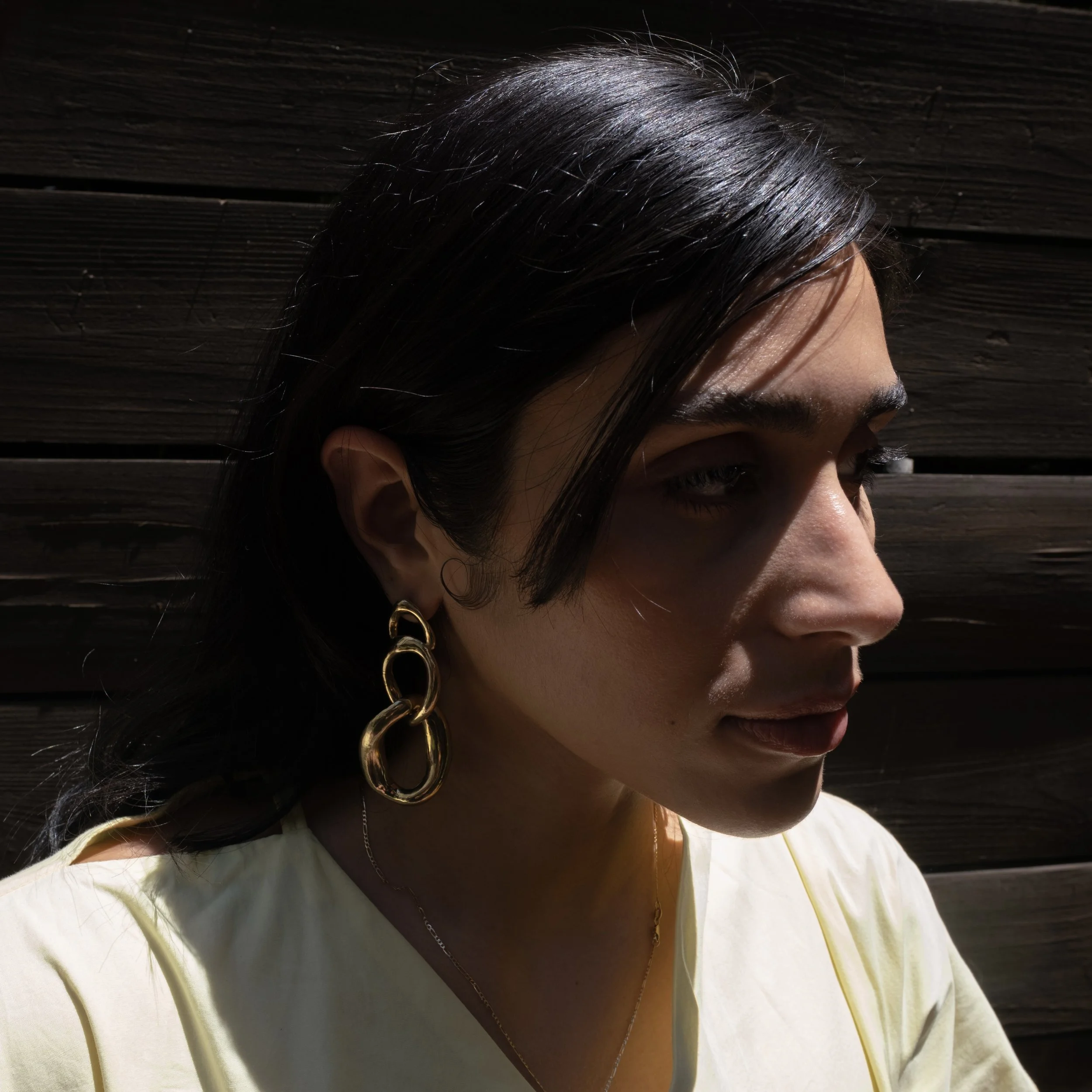 Bold statement earrings in silver or brass with sterling silver backs and posts. The hoops are hollowed out in the back to make them lighter than they appear.