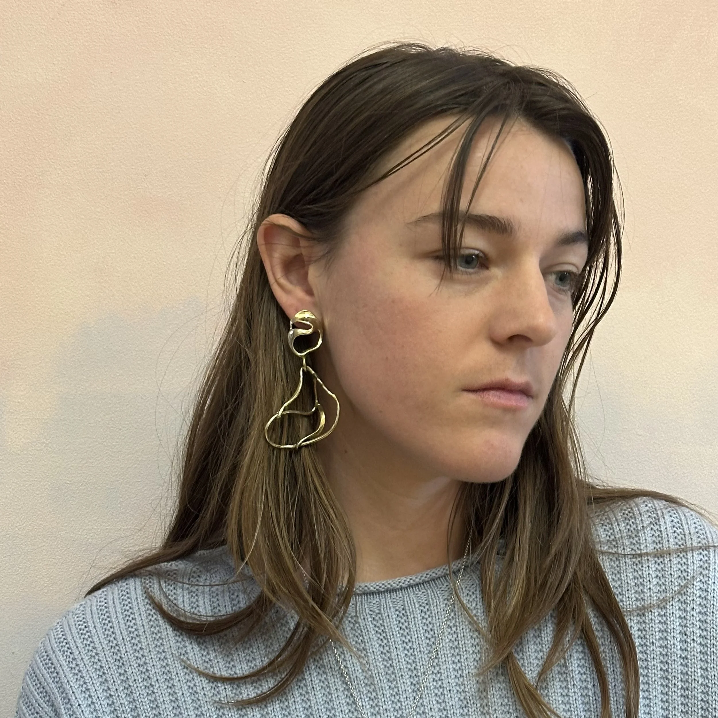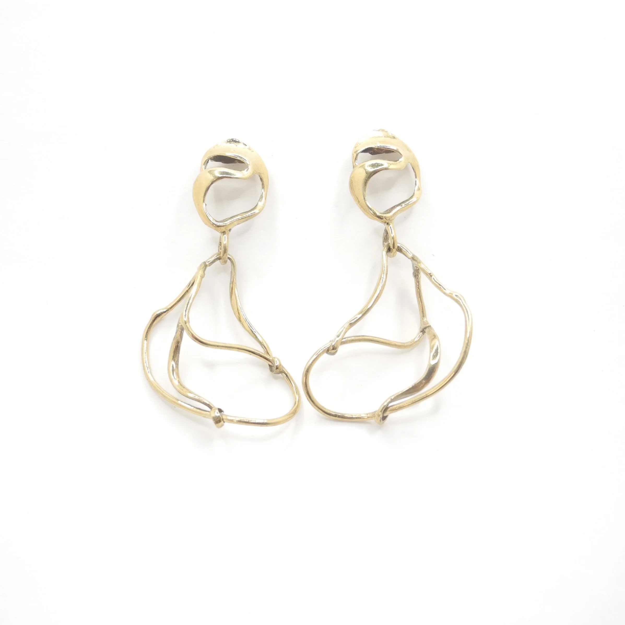 Elegant dangling earrings in brass and silver. Brass earrings have silver posts.